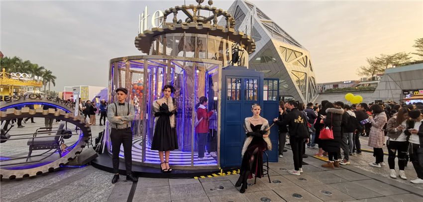 在多元的品牌体验馆当中,喆啡以“时间旅行者TIME TRAVERLLERS”主题的体验馆赚足了眼球。喆啡致敬经典穿越电影,将体验馆打造成独特的时光机,内嵌巨型齿轮、复古蒸汽机……炫酷的展馆造型神秘感十足。